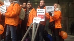 30 French trade unionists fly to Glasgow to demonstrate at Weir Group PLC global headquarters to save their jobs.
